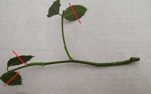- Крок 3. Обрізаємо листя у живців троянд