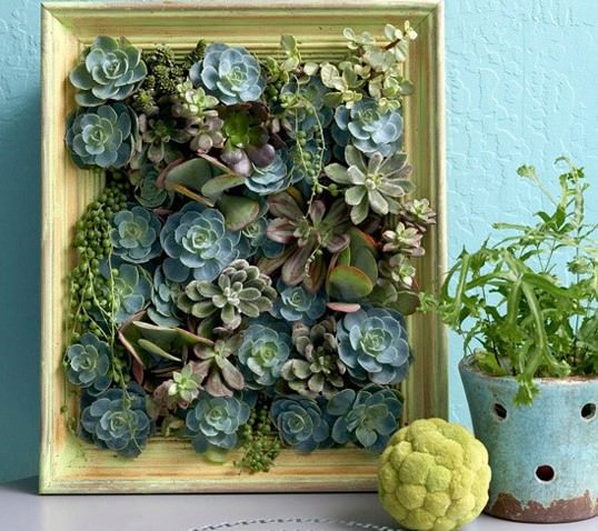 Витончений вигляд і зручність в догляді визначило особливе місце сукулентів при виготовленні вертикальних садів. Вони мають різноманітну форму, добре уживаються один з одним, невибагливі в догляді, тому працювати з ними дуже зручно.