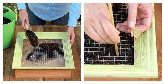 Оскільки вертикальний сад стилизуется під звичайну картину, він поміщається в рамку. Звичайно, знадобиться і ємність для землі, яка буде кріпитися до цієї рамі. А оскільки зелену картину поміщають на стіну, то для запобігання висипання грунту потрібна сітка з великими вічками (щоб в них спокійно поміщалися стебла будуших мешканців садка), яка також фіксується на рамі.