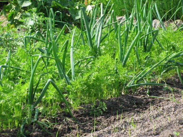 Цибулю і моркву рекомендується садити поруч не тільки тому, що ці культури благотворно впливають один на одного. А ще вони компактно розташовуються на грядці