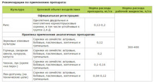 Кількість використовуваного гербіциду в середньому від 2,5 до 6 літрів на гектар. Для основних культур норми витрати і особливості внесення наступні: