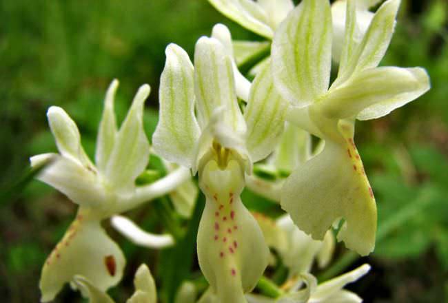 - Мавпячий зозулинець – трав'янистий багаторічник, що досягає у висоту 45 см.Цвіте з квітня по травень. Під час цвітіння утворюються численні білі або рожеві квітки з дрібними цяточками пурпурного кольору. Рослина є рідкісним видом, занесено до Червоної книги.