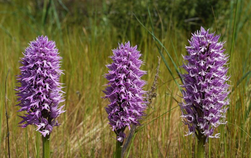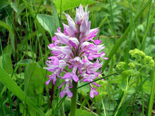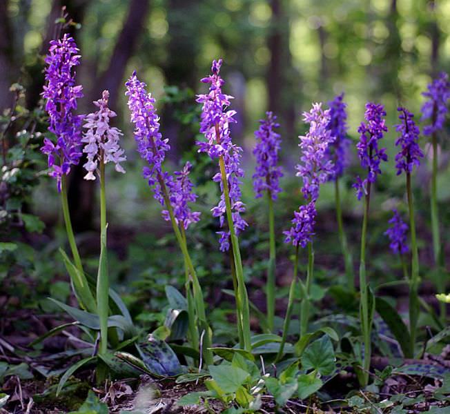 - Чоловік зозулинець – трав'яниста багаторічна рослина з парними бульбами. На зворотному боці листя присутні темно-фіолетові або пурпурні плями. Суцвіття зібрано з квіток пурпурного або блідо-фіолетового кольору. Цвіте з червня по липень. Рослина занесена до Червоної книги.