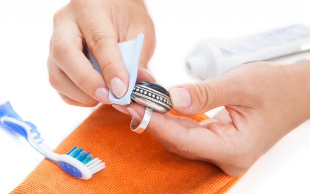 Наліт на срібних виробах. Щоб освіжити виріб, нанесіть на нього трохи зубної пасти, залиште на кілька годин, а потім ретельно промийте водою. Якщо забруднення сильне, потріть виріб щіткою або ганчіркою, поки воно не заблищить.
